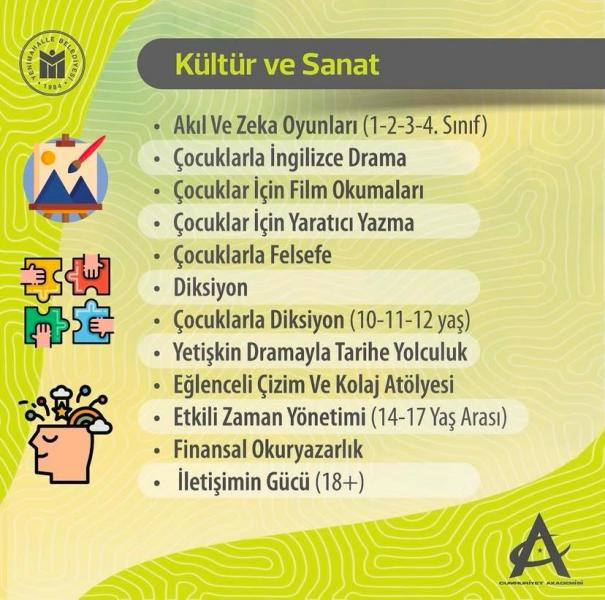 Cumhuriyet Akademisi; 11 yaş ve üzeri çocuk ve gençlerimize gönelik tasarlanmış, 8 ana dalda, 52 branşta eğitim veren ve sosyal etkileşim sunan bir merkezdir.Akademik anlamda sunulan eğitimlerin yanı sıra kültürel ve sanatsal aktivitelerin düzenlendiği merkezde, gençlerimiz aynı zamanda hayata geçirdikleri çalışmaları sergileme imkanı bulmaktadır.